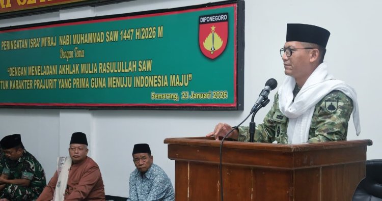 SEMARANG - Kodim 0733/Kota Semarang mengambil langkah strategis dalam upaya menempa kualitas moral dan spiritual prajuritnya. Melalui peringatan Isra Mi’raj Nabi Muhammad SAW 1447 H/2026 M yang digelar di Aula Sudirman, Jumat (23/1/2026), satuan ini menegaskan komitmennya untuk membangun prajurit yang tidak hanya andal dalam tugas, namun juga kokoh dalam keimanan.